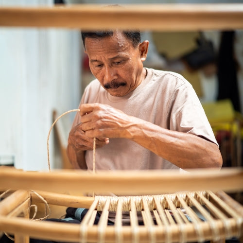 We have worked with Harianto since we started the Bali Concept. Harianto is responsible for all of our seating collections and is experienced in both woodworking and rattan weaving.