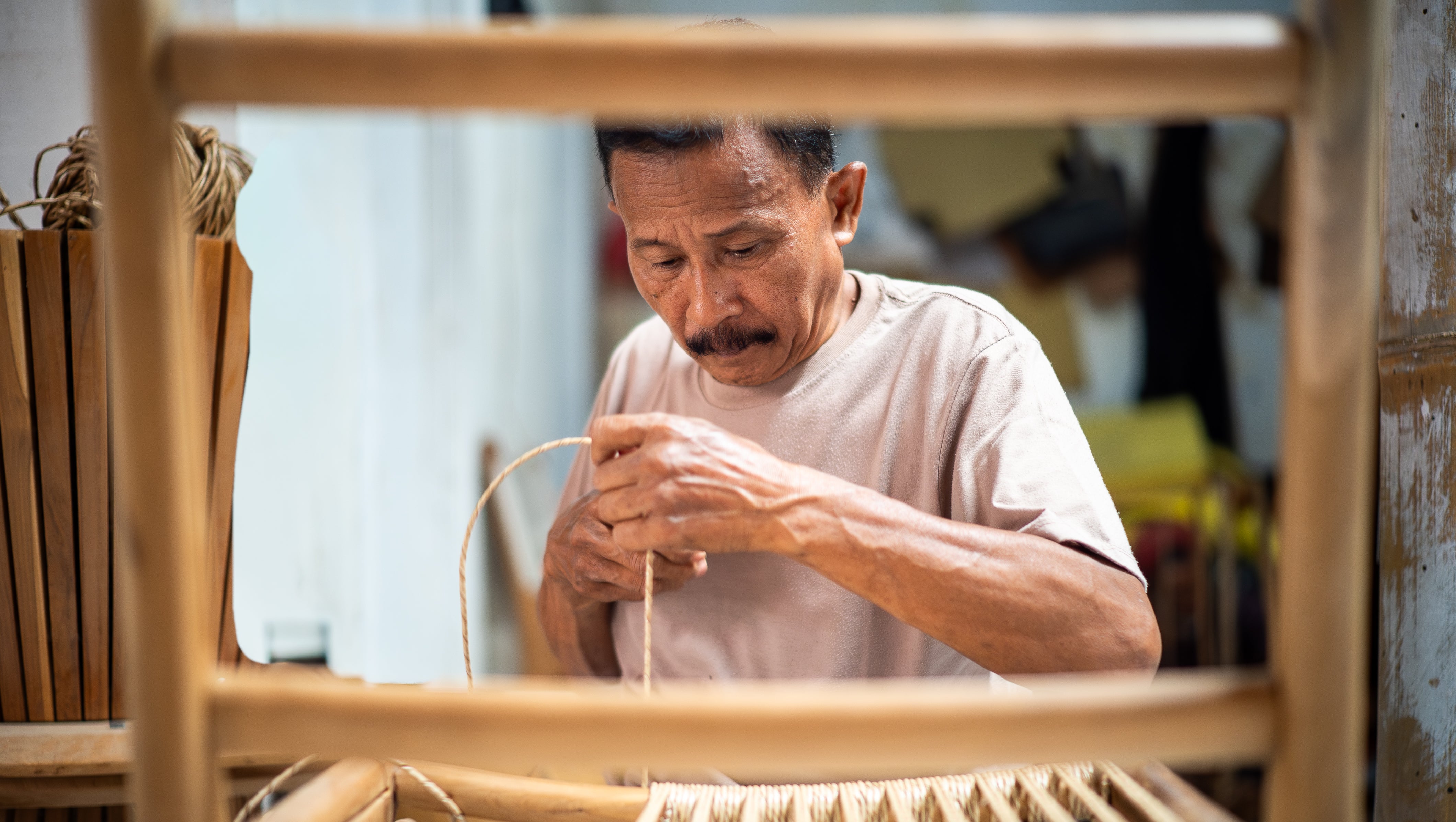 All of our furniture pieces that involve weaving and teak wood are created by hand at our Jaya Indah workshop. Located in South-East Bali, our team lead by lead craftsman Harianto have over 50 years experience in creating high quality pieces that are now proudly shared with our customers.