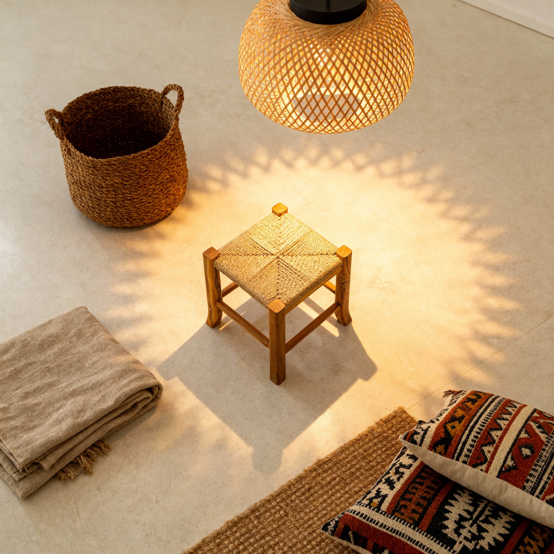 Slowly crafted in Bali, the Lalita Rattan Stool combines a solid teak frame with a handwoven rattan blend seat for comfort that lasts. Made in small batches with subtle variations in the weave and wood grain, each piece feels unique and full of character. Lightweight, versatile and easy to move around the home, it works as extra seating, a footstool or a simple way to add natural texture and quiet craftsmanship to your space.
