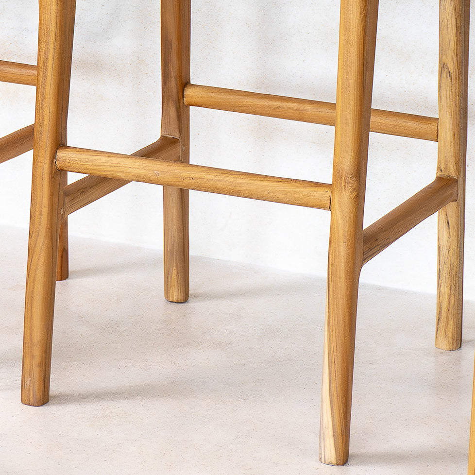 Each stool takes over two weeks to make, using teak wood that has been kiln dried to reduce moisture and ensure long-lasting strength. The frame is then handwoven with two layers of high-quality rattan, chosen for its flexibility and ability to maintain its shape over time. The result is a stool that offers gentle spring and lasting comfort, even with daily use. Naturally resistant to mould and humidity, this rattan makes the stool ideal for kitchens and bar areas. With a seat height of 65cm, it fits standard UK counter heights perfectly. Made slowly in small batches and never mass produced, each stool is a rare piece of craftsmanship built to be beautiful, practical, and made to last.